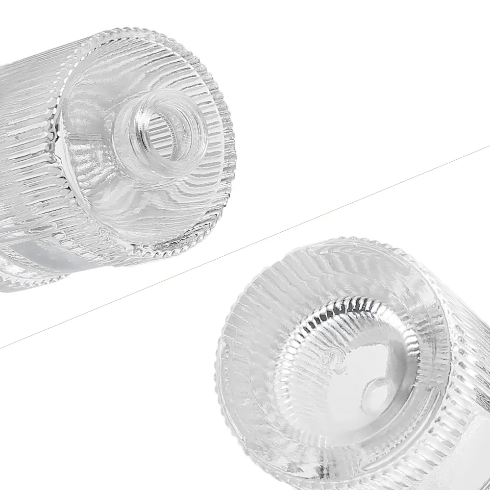 小型の香水ボトルは、コンパクトな円筒形に縦方向のリブ加工を施し、洗練された触感を実現しています。厚みのある底面が安定性を高め、透明なボトル本体からは中に封入された香りが美しく見えます。丸みを帯びたキャップと滑らかなスプレーノズルを備えたデザインは、小売店や旅行先など、あらゆる場面で活躍するエレガントな印象を与えます。