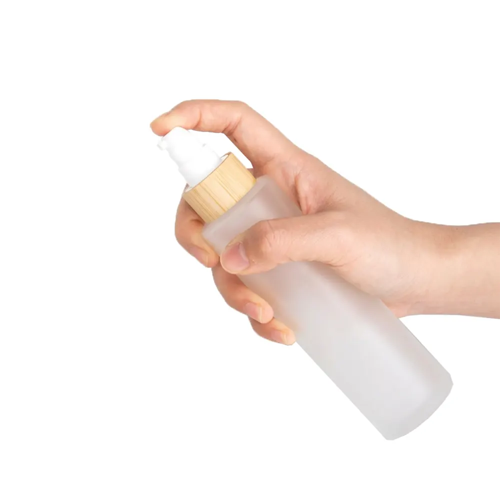 Szklane butelki z pompką wykonane są z matowego szkła, które w połączeniu z naturalnym bambusowym korkiem i głowicą pompki tworzy projekt łączący w sobie elementy ekologiczne i nowoczesny design. Szklane butelki na balsamy są przezroczyste i miękkie w dotyku, dzięki czemu nadają się do pakowania różnych produktów do pielęgnacji skóry, takich jak balsamy, serum i toniki, zaspokajając codzienne potrzeby, a jednocześnie zwiększając rozpoznawalność marki.