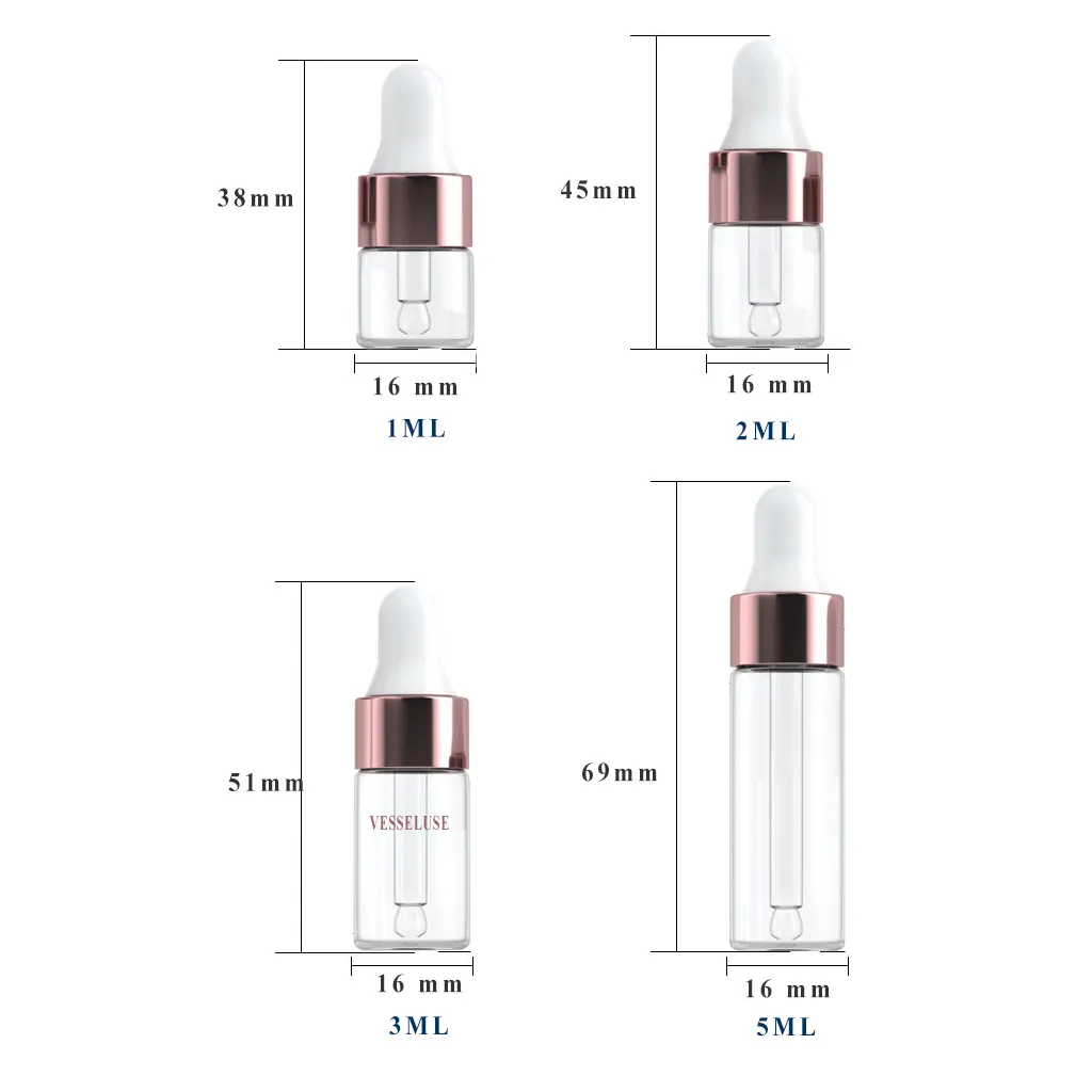 1ml-5ml Mini Dropper Bottles with Rose Gold Lid Wholesale