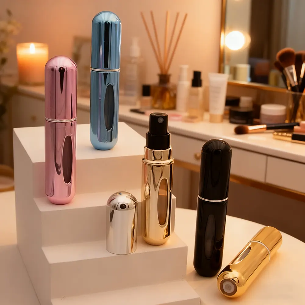 - Material and Capacity Choices: The combination of an aluminum outer shell with an inner glass or plastic bottle makes a product that is both light in weight and strong. The capacities of 5ml, 8ml, and 10ml are available to be able to cover different situations (travel, everyday carry, etc.).